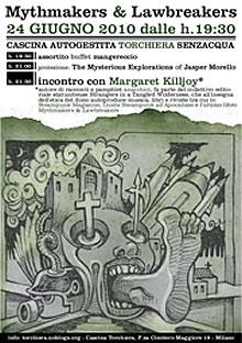 ore 21.30 incontro con Margaret Killjoy autore di racconti e pamphlet anarchici, fa parte del collettivo editoriale statunitense Strangers in Tangled Wildrness, che all’insegna dell’etica del dono produce musica, libri, riviste tra cui “Steampunk Magazine”, Guida Steampunk all’apocalisse e l’ultimo libro Mythmakers & Lawbreakers