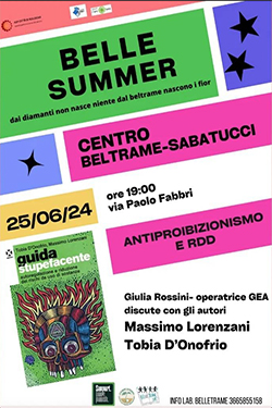All’interno di “Antares - Festival di Cura e Cultura” presso il Chiosco della strega presentazione del libro Guida stupefacente. Autoregolazione e riduzione dei rischi da uso di sostanze di Tobia D'Onofrio e Massimo Lorenzani
