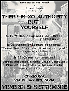 21,30: presentazione di Crass Bomb e Rumble bee con Marco Philopat, editore e bardo della controcultura con sonorizzazione di Pablito el drito, dj e spacciatore di vinili e libri